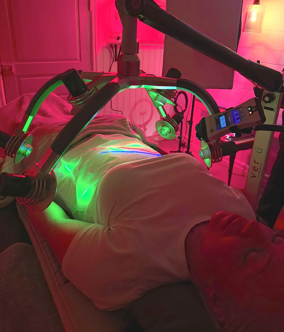 Grönt laserljus förbättrar metabolismen, stramar upp huden, minskar inflammation och stödjer fettminskningsprocesser – samtidigt som det ger både avslappning och ny energi.